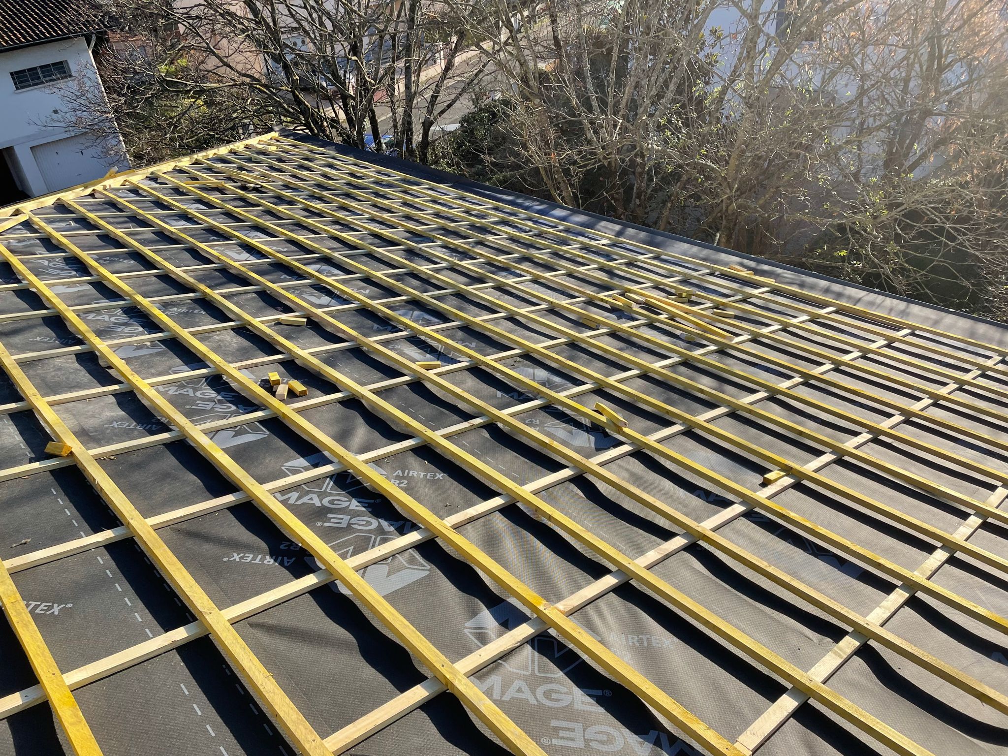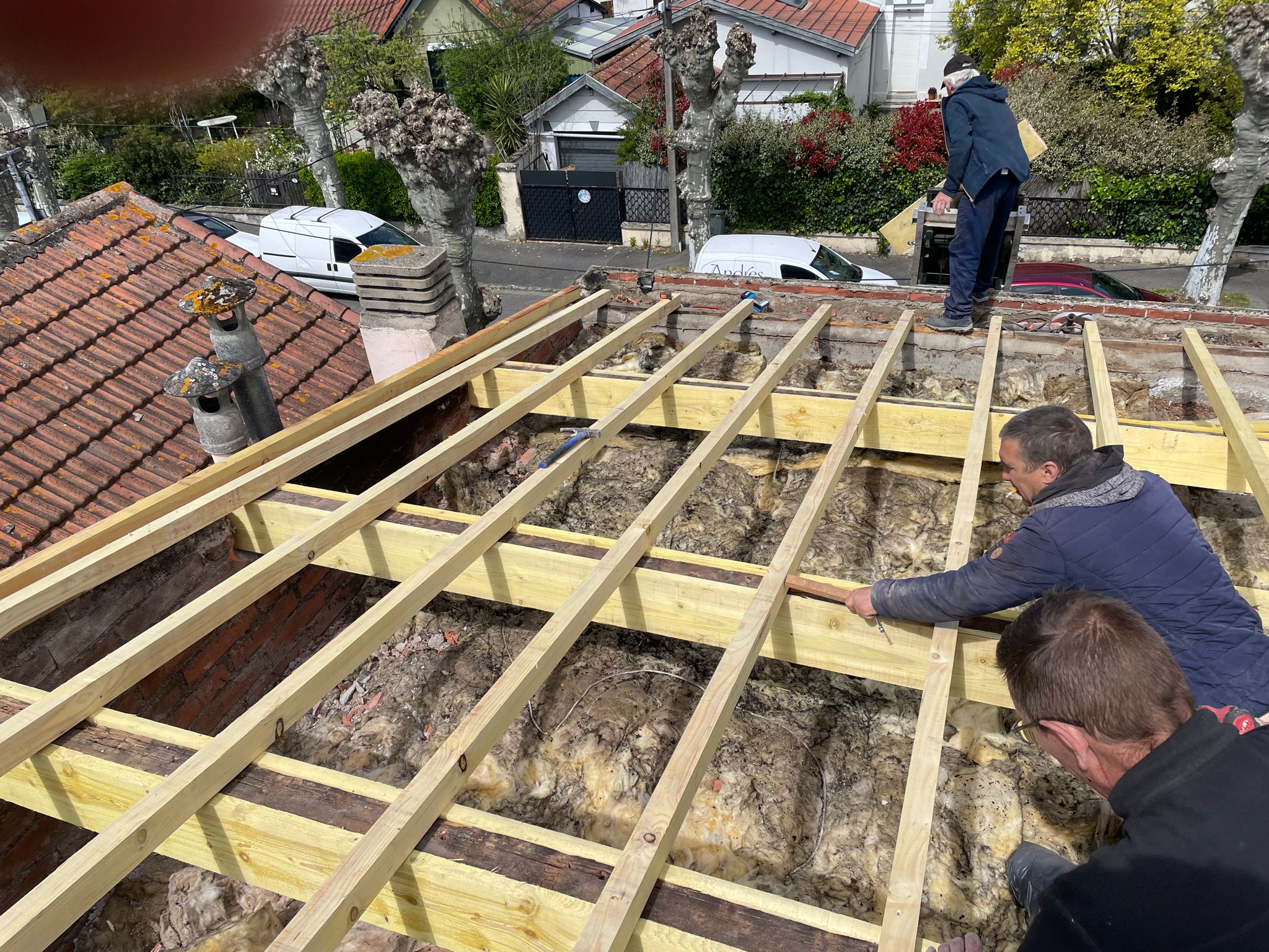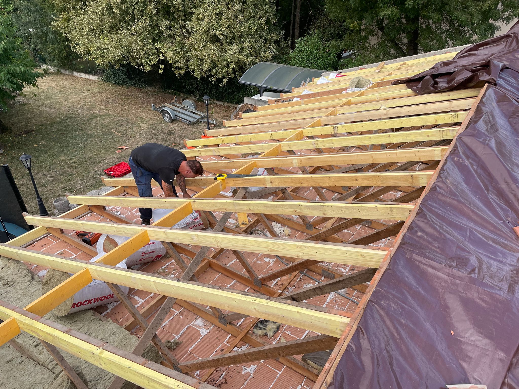 Extension de maison. Ils ont posé toute la toiture, étanchéité parfaite et finitions soignées.